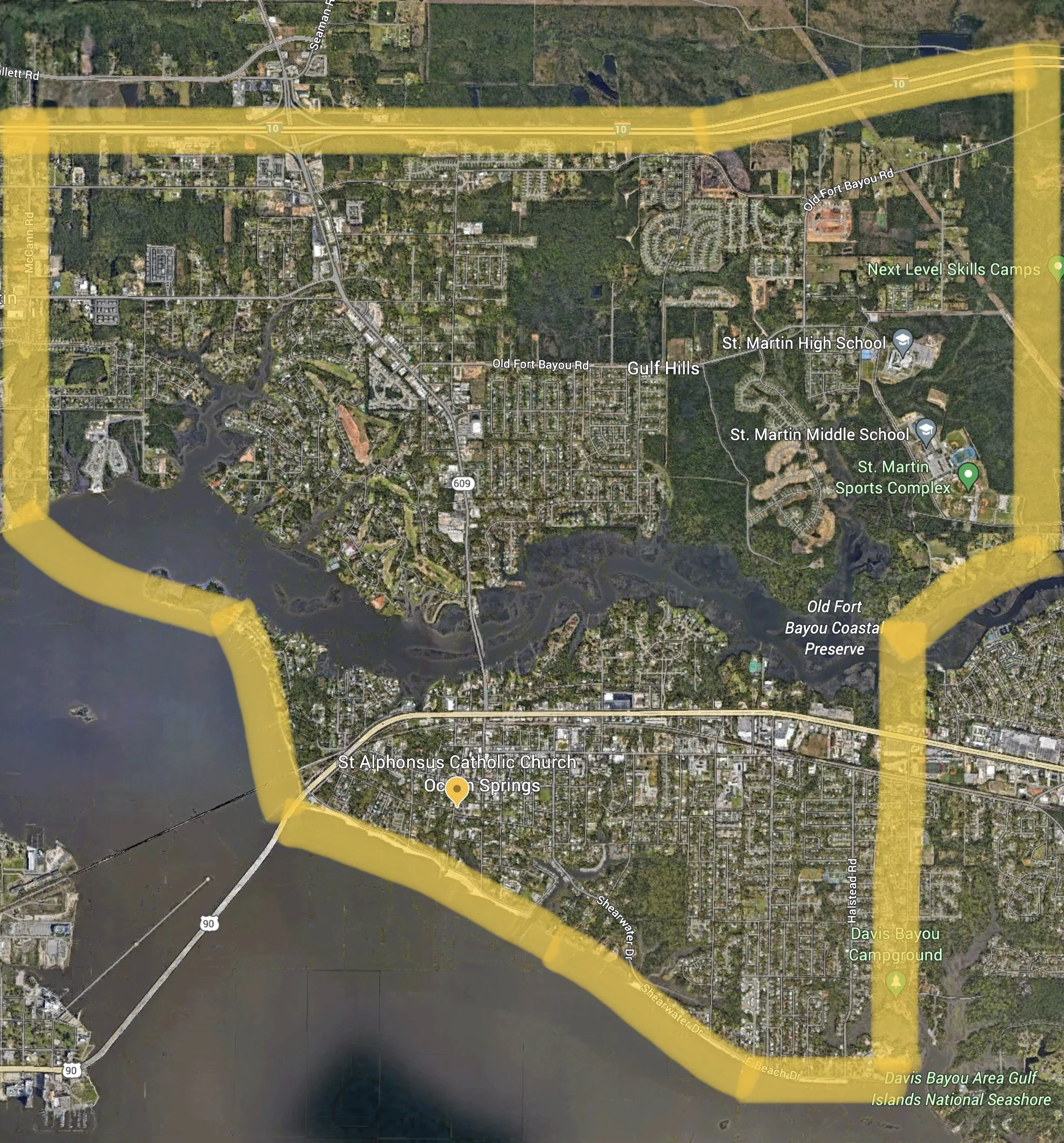 Service Area: East of the Biloxi/Ocean Springs bridge; West of Hanley Road; South of I-10 interstate.